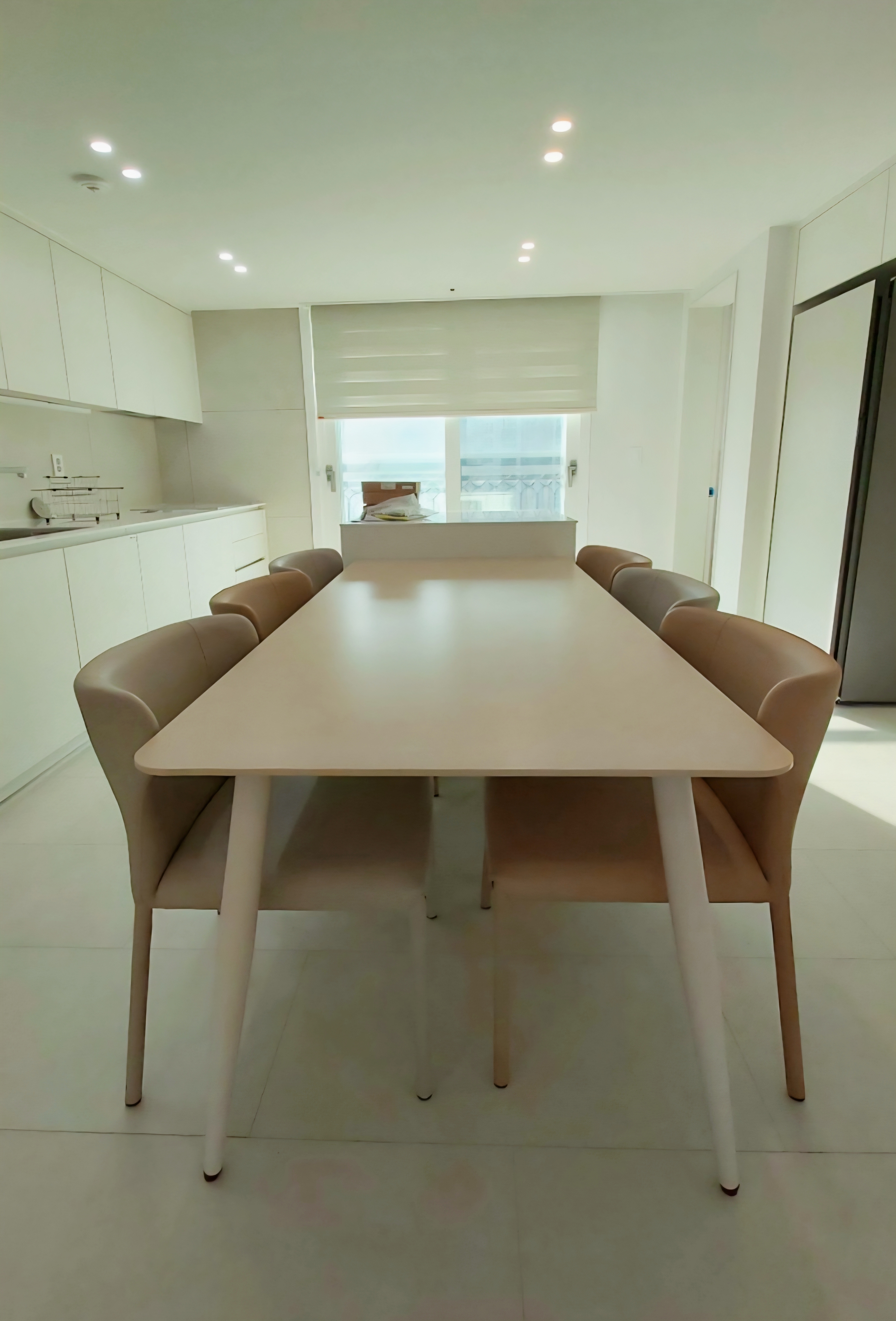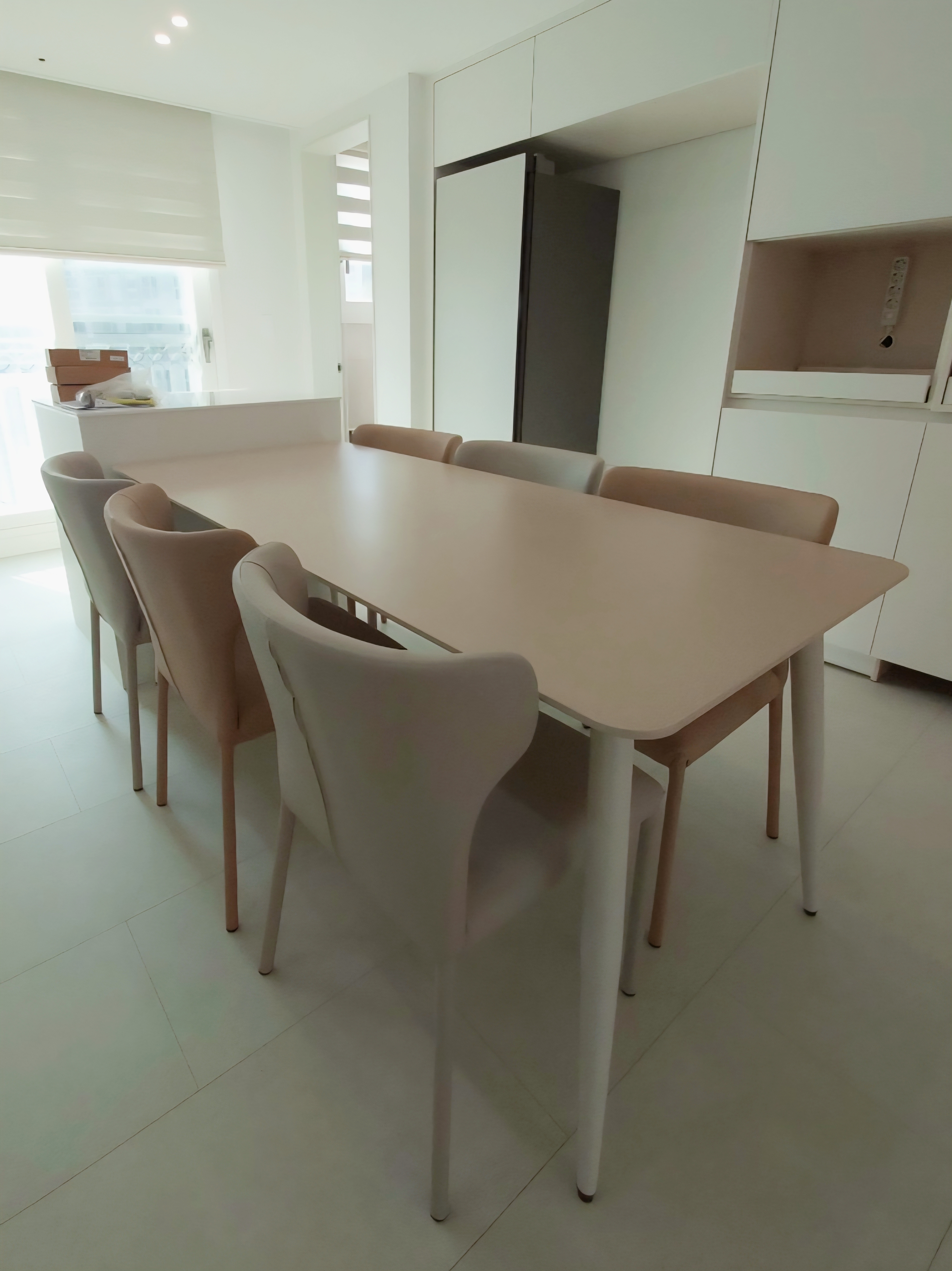 배송 날짜 딱 맞춰서 들어왔고 설치도 금방됐어요!! 식탁을 집에서 다시보니 훨씬 이쁜거같고 고급진 느낌나요~ 엄청 튼튼하네용!